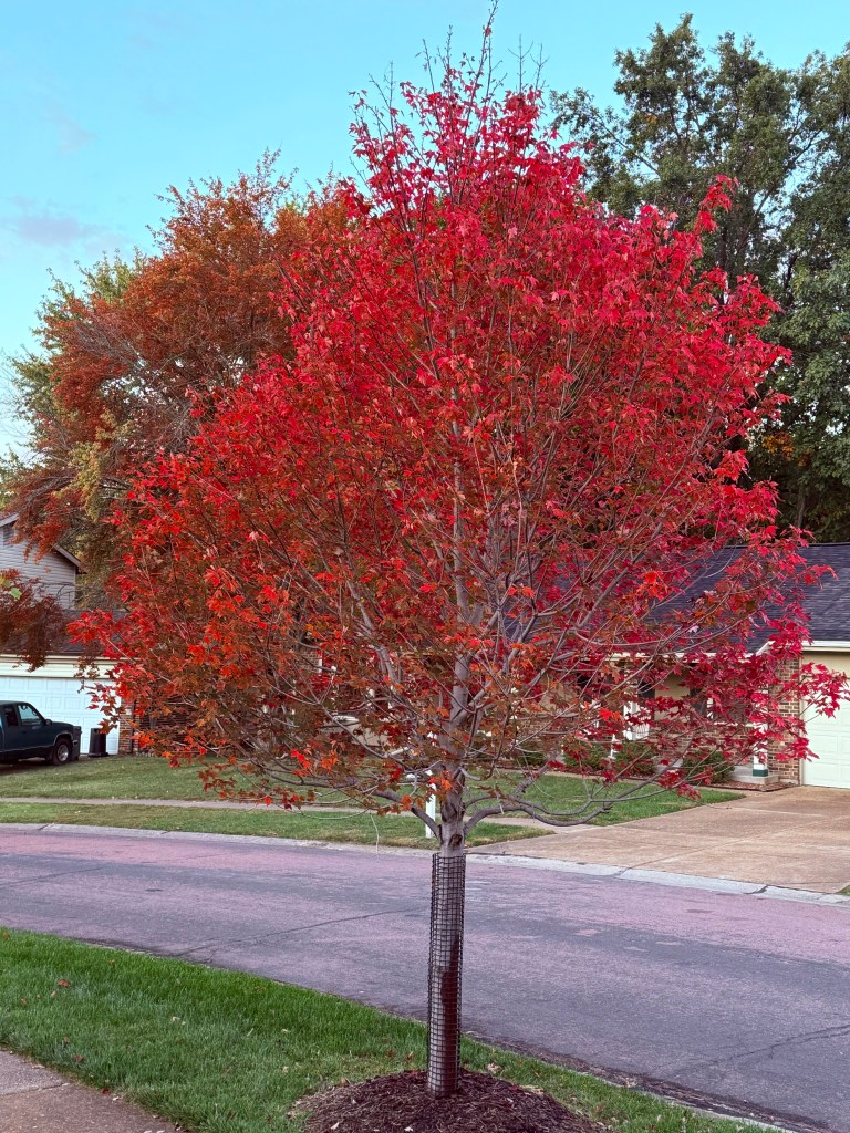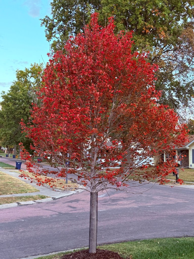 This fall, the two red point maple trees we planted last year have undergone a beautiful transformation. Their once-green leaves have turned a brilliant red, adding a striking splash of color to the yard. It’s hard to believe they were so different just a few weeks ago.